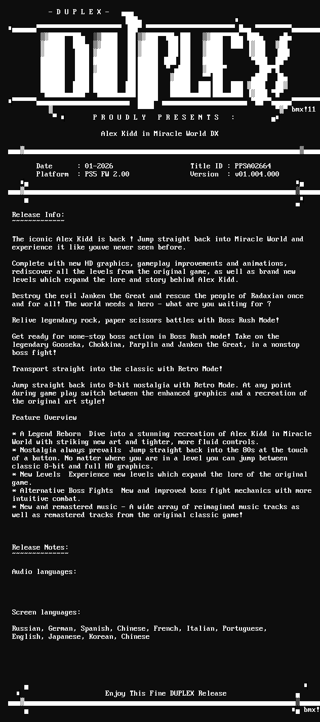 * A Legend Reborn – Dive into a stunning recreation of Alex Kidd in Miracle World with striking new art and tighter, more fluid controls.