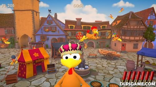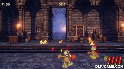 If a wild chicken gets in the line of fire, blast it with a shotgun, rocket launcher, or chicken-hammer. Quickly load up on ammunition to enjoy maximum shooting action, and the chickens will either have to drop their feathers or end up roasting on the spit!