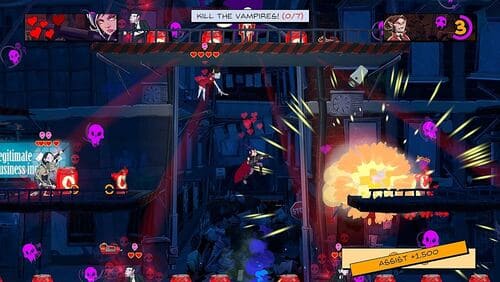 Cause distress in this fast-paced, challenging action platformer! Speed through dozens of missions as Special Agent Damsel, the first and last line of defence against the seedy world of corporate vampires. Rescue hostages, disarm bombs, hack servers and dispatch the undead with precision, speed, and style. Balance frenetic action with split second choices, and pay attention, you never know where the next vamp will come from.