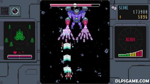 Take to the skies, the planet’s lower orbit, enemy space stations, asteroid fields and more as swarms of enemy ships and environmental hazards try to take you down. Manage your shields and watch your health! With each run, you’re able to apply persistent upgrades to your ship’s stats, from weapon level to lasers and even wingmen. Can you overcome 5 stages of bullet hell action and discover what awaits in the abyss beyond?