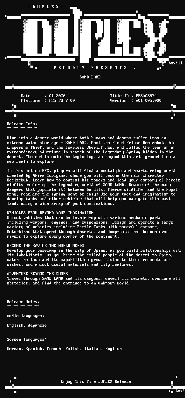 This action-RPG is a nostalgic and heartwarming world created by Akira Toriyama, where you will become the main character, Beelzebub. Learn how to control his powers and lead your company of heroic misfits, exploring the legendary world of SAND LAND and the brand-new Forest Land. But beware of the many dangers that populate them: between bandits, fierce wildlife, and ruthless Army Generals, reaching the spring and saving the world won’t be easy!