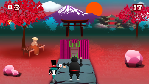 Tetsumo Party is a game where sumo warriors gather to join an unconventional contest, inspired by Japanese TV shows. They need to fit into the funny-shaped holes in an approaching bamboo wall, otherwise… well, let’s say that it will result in rather ridiculous manner.